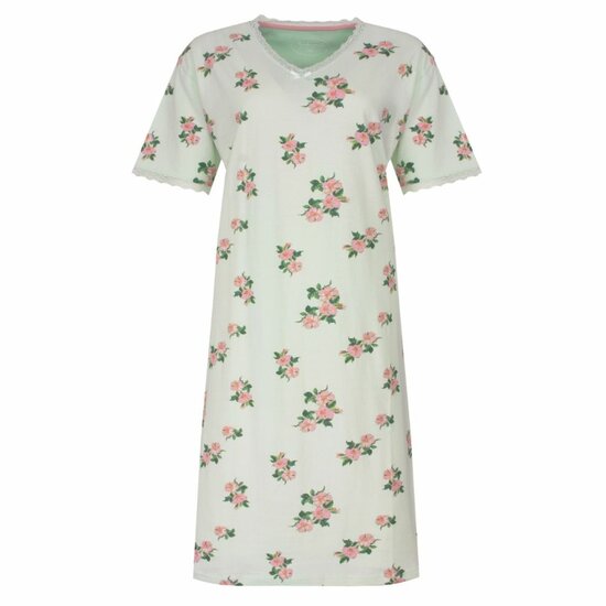 Kleur: Tenderness tricot dames nachthemd korte mouw Cameo Green